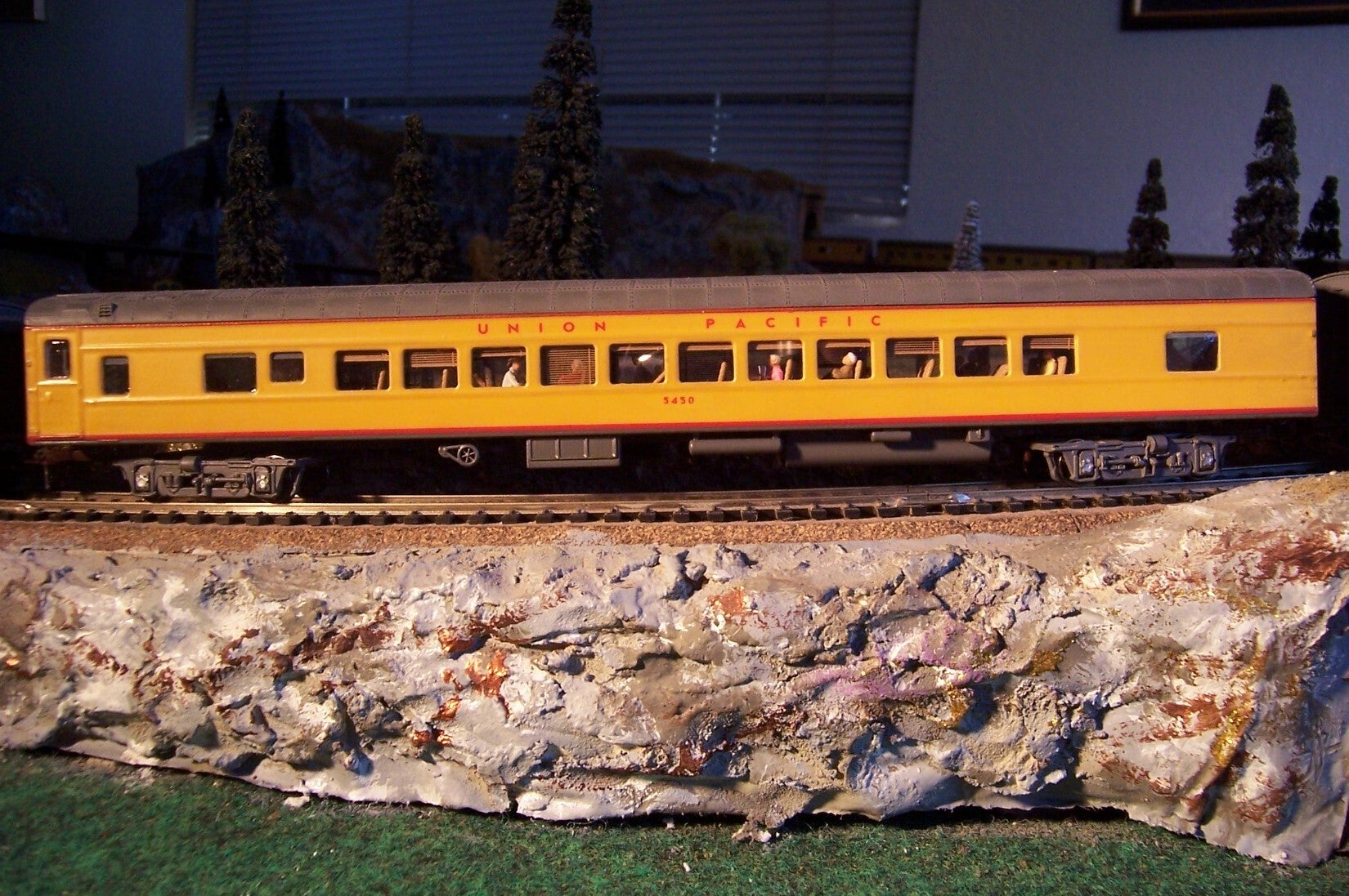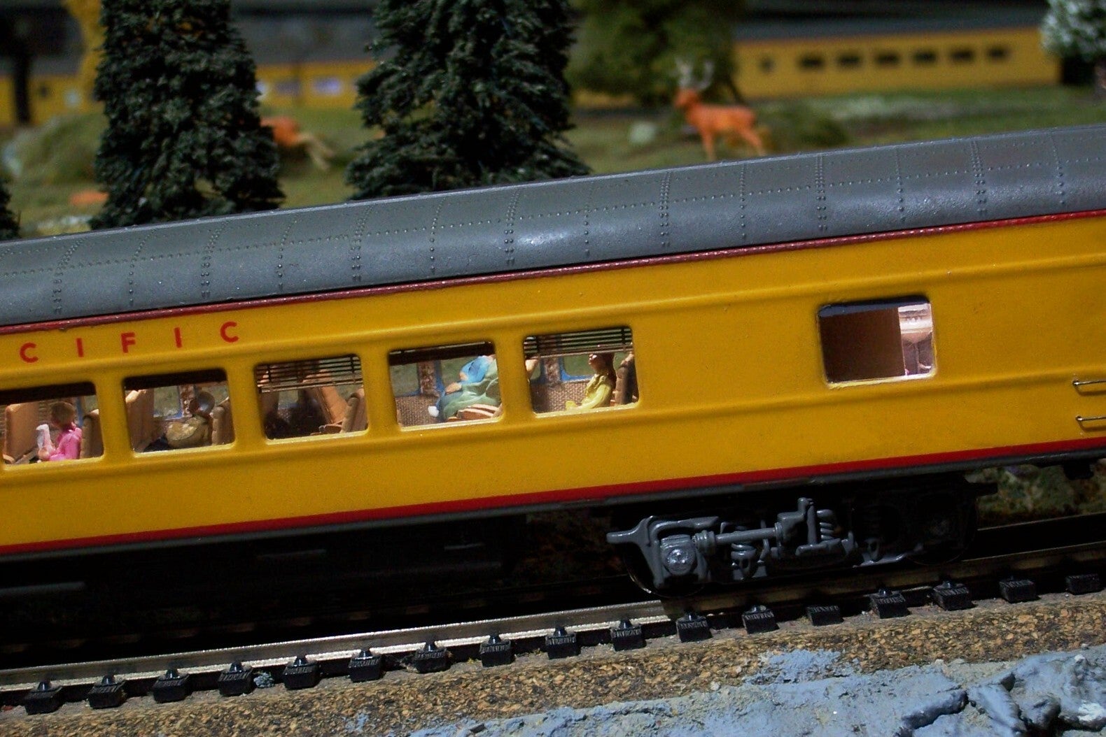 My ACF 44 seat coach is the most interior detailing of a plastic car that I have done to date. I even put in some overhead luggage racks. They hide the roof locking tabs. Those Red Cap Line Sleepy Hallow seats and restroom fixtures are awesome! Unfortunately, Red Cap is no longer in business, but their parts can be found on ebay at times. I am pretty much done with this guy. Might do a chair for the conductor's desk someday.